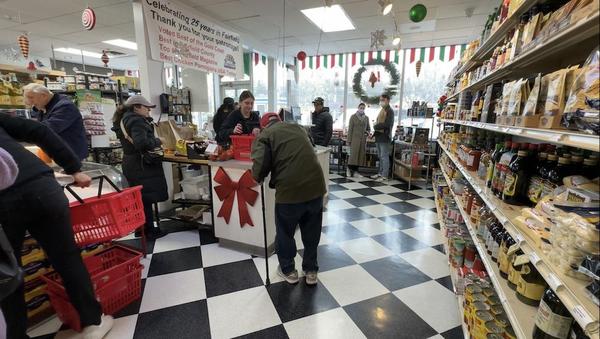 (WEST NEW YORK, N.J.) — On a recent Sunday morning in the Palisade Avenue neighborhood, a woman in a red fleece jacket and a beige hoodie steps out of a two-story, brick house with a yellow refrigerator on the front yard that reads, “Free Food.” With a black beanie under her hoodie and with her hands in her pockets, she greets a reporter with a warm smile.